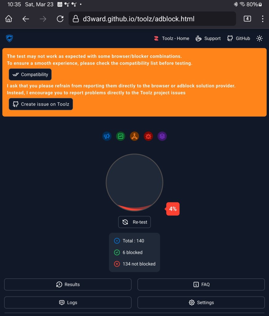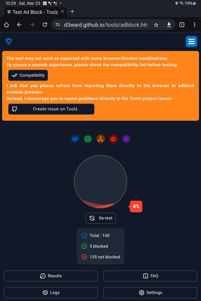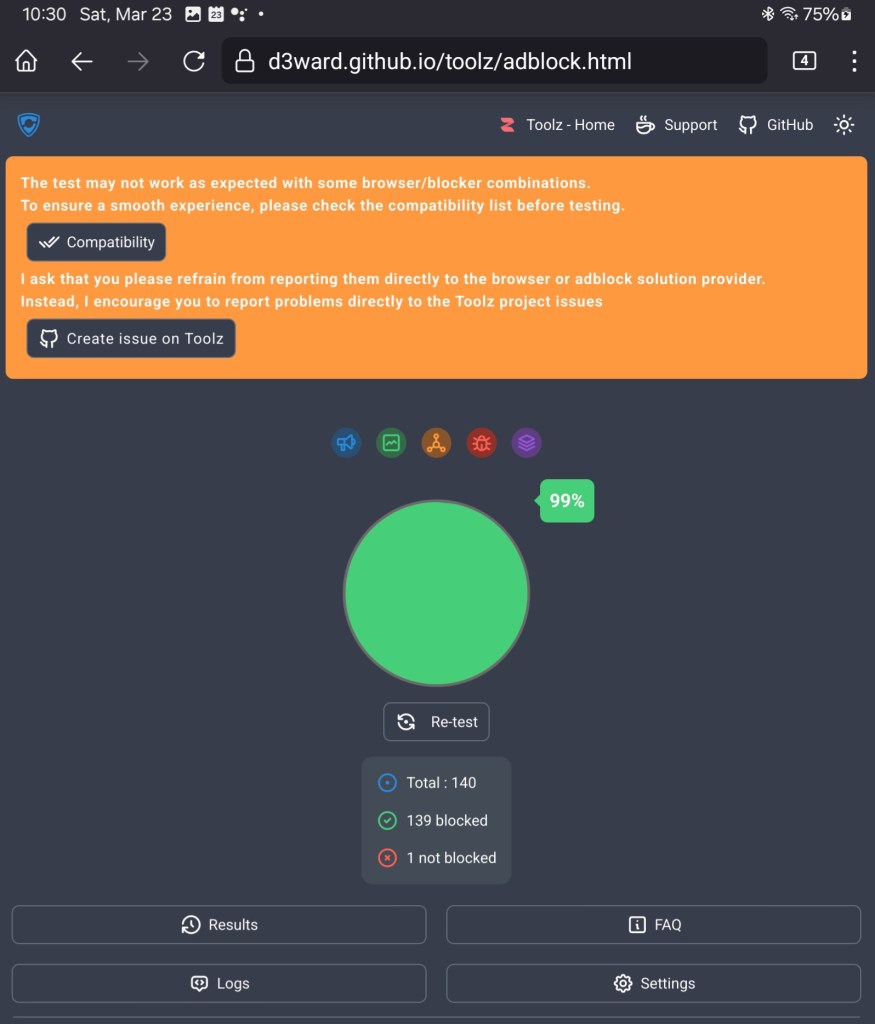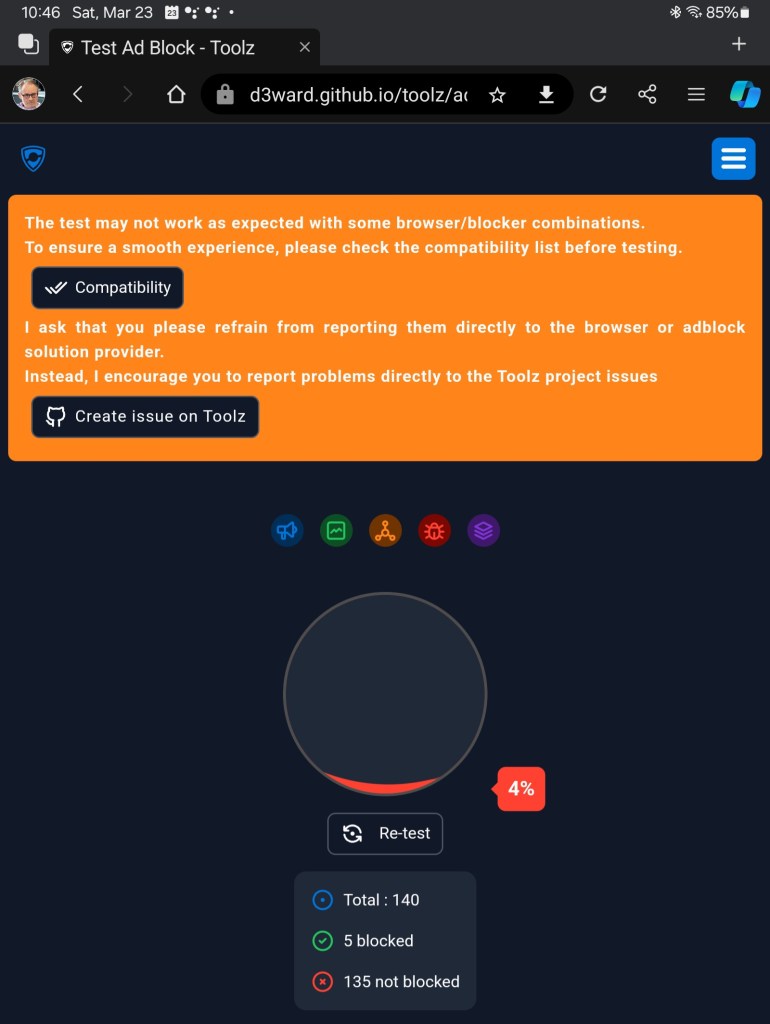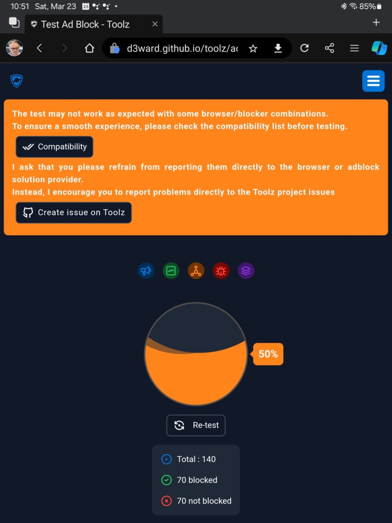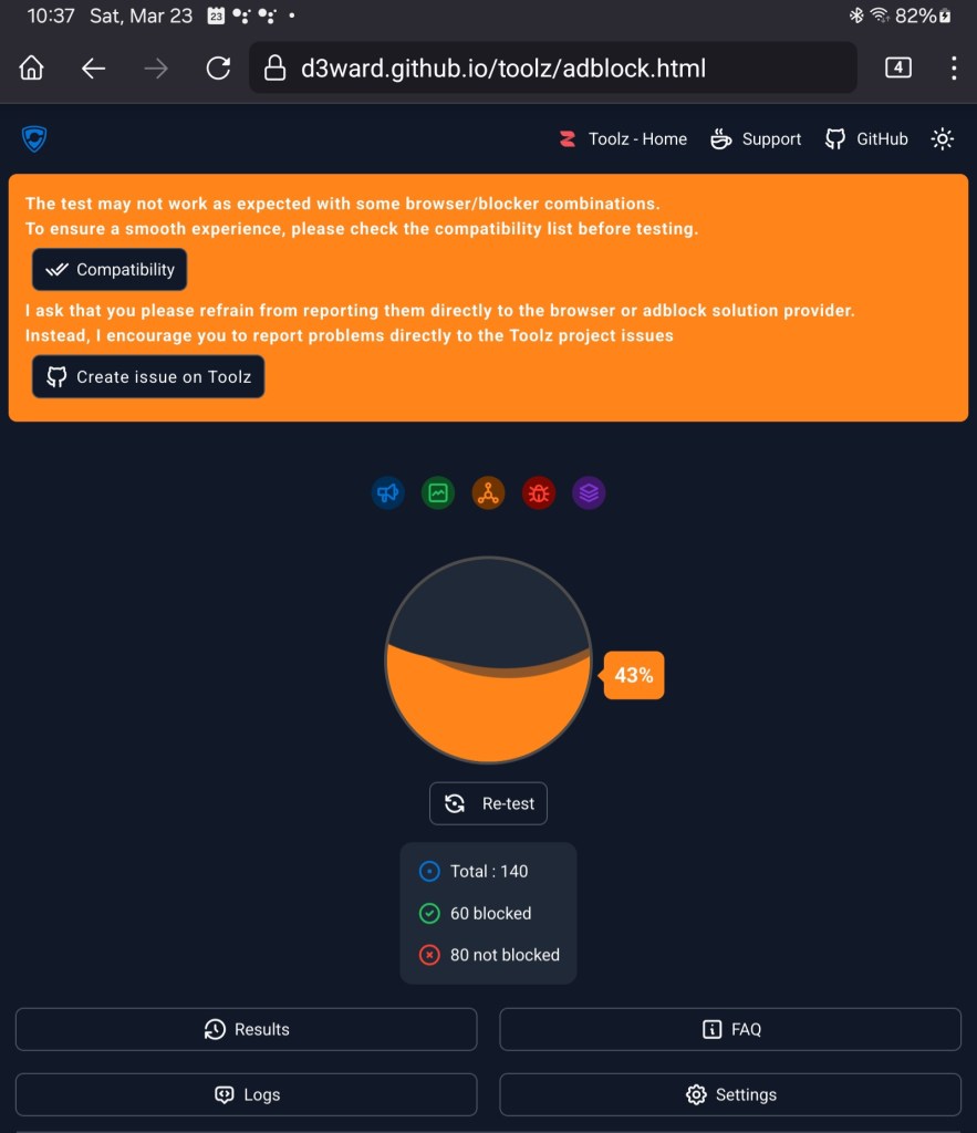 So let’s cut to the chase. How do you know if your ad-blocking is working beyond the visible difference on sites you visit? Look no further and visit the Toolz Adblock Test site below.
